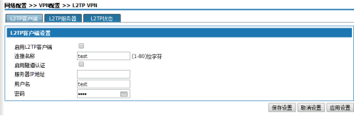 選中單選框,啟用L2TP客戶端功能,同時關閉服務器功能。 |